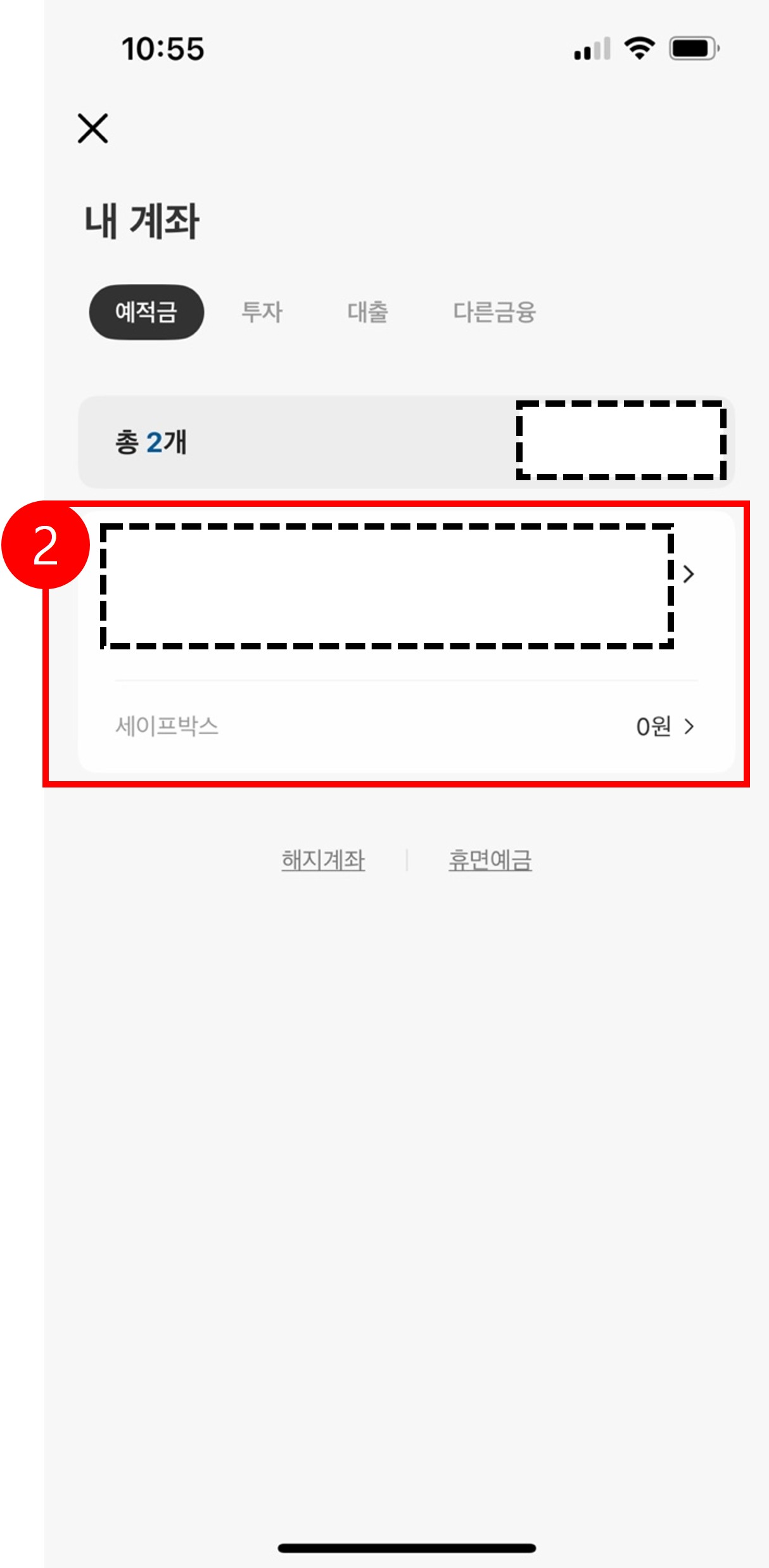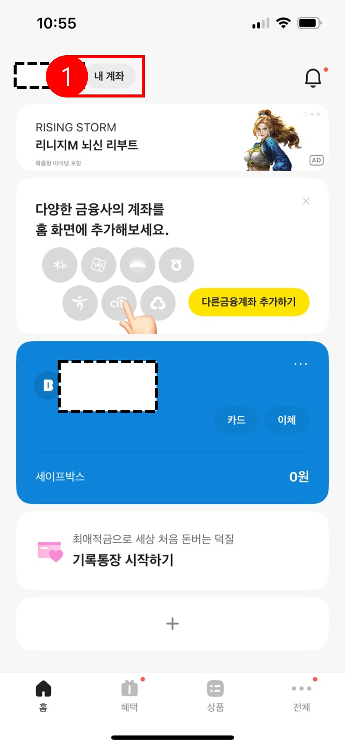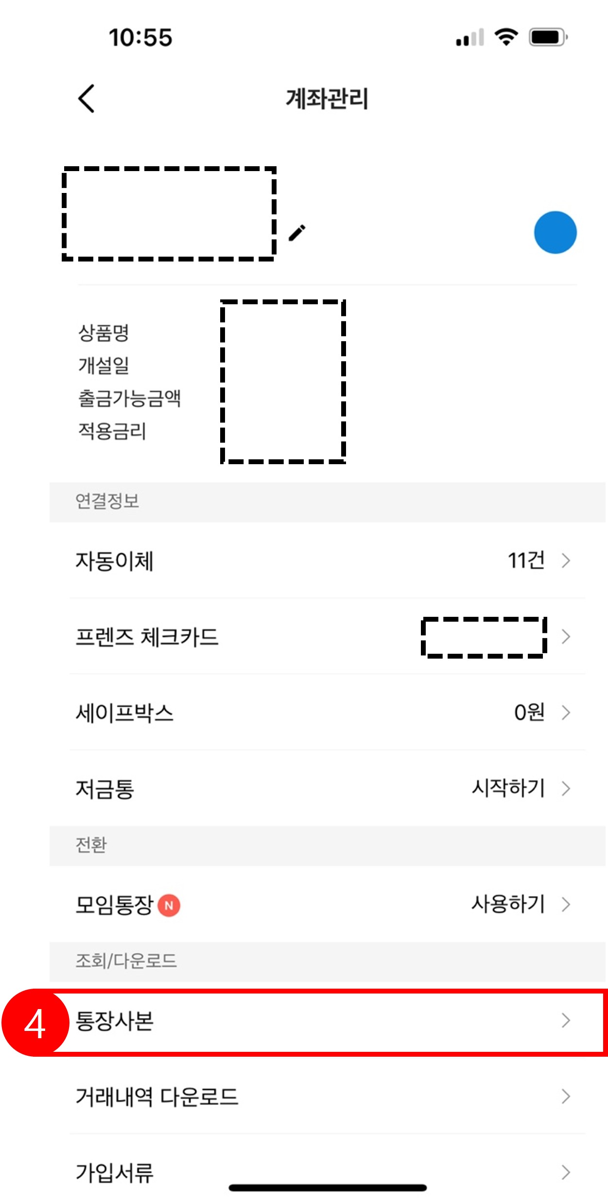 - 계좌 선택: 메인 화면에서 카카오뱅크 통장사본 확인이 필요한 해당 계좌를 터치합니다.