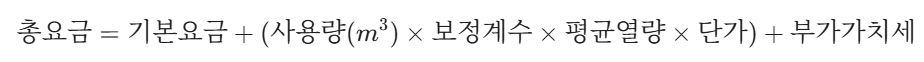 가스 요금 산정 방식은 대략 다음과 같습니다.